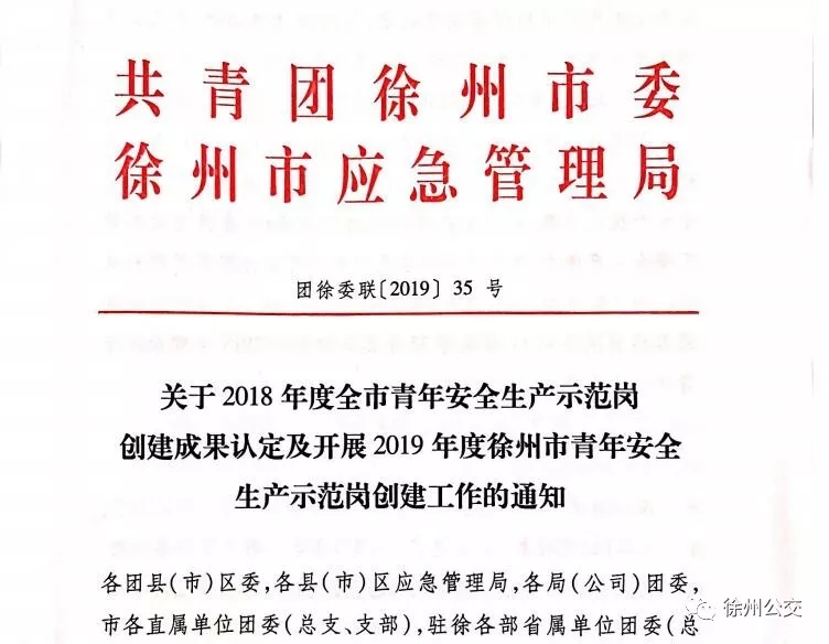 近日,共青團(tuán)徐州市委與徐州市應(yīng)急管理局聯(lián)合發(fā)布了《關(guān)于2018年度全市青年安全生產(chǎn)示范崗創(chuàng)建成果認(rèn)定及開展2019年度青年安全生產(chǎn)示范崗創(chuàng)建工作通知》,兆通公司81路線被認(rèn)定為2018年度徐州市“青年安全生產(chǎn)示范崗”。81路線路由徐州淮海食品城車站開往大許鎮(zhèn),途經(jīng)20多個(gè)站點(diǎn),保證了大許及沿途居民的便捷出行。該線路自創(chuàng)建“青年安全生產(chǎn)示范崗”以來,把創(chuàng)建活動(dòng)作為凝聚車隊(duì)青年、團(tuán)結(jié)青年、帶領(lǐng)青年建功立業(yè)的有效載體,緊密結(jié)合公交行業(yè)特點(diǎn),將“青年安全生產(chǎn)示范崗”創(chuàng)建工作納入車隊(duì)工作中,努力營造濃厚的創(chuàng)建氛圍。