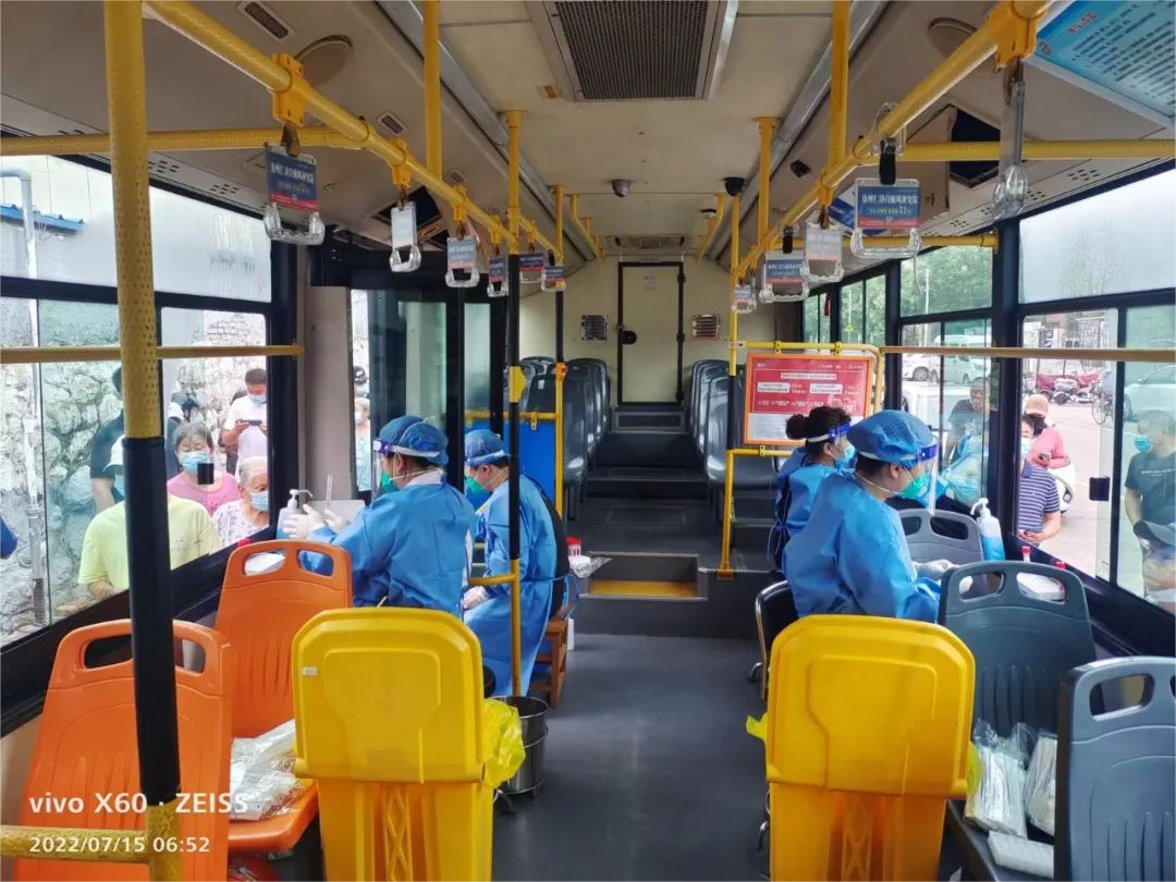 7月15日,新一輪全員核酸檢測開始了。交控公交再次吹響集結號,為保障我市核酸檢測工作順利開展,全力配合醫(yī)務人員齊心抗疫。凌晨4:30分,各營運公司核酸采樣流動車陸續(xù)到達指定地點,協(xié)助社區(qū)以最快速、最短時間完成核酸檢測工作。