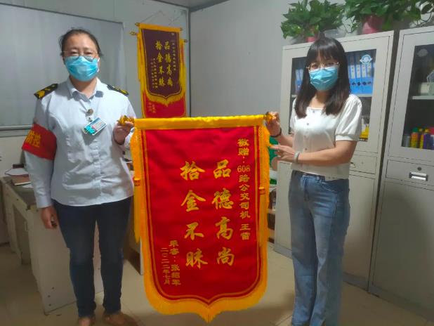 7月20日下午吳先生帶著一面“拾金不昧,品德高尚”的錦旗來(lái)到了新巴士公司38路調(diào)度室對(duì)駕駛員李倩倩表示感謝。