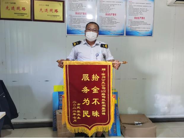 幾日后,張先生拿寫著“拾金不昧,服務為民”的錦旗來到調度室,表達了對張閣堂的感謝之情。