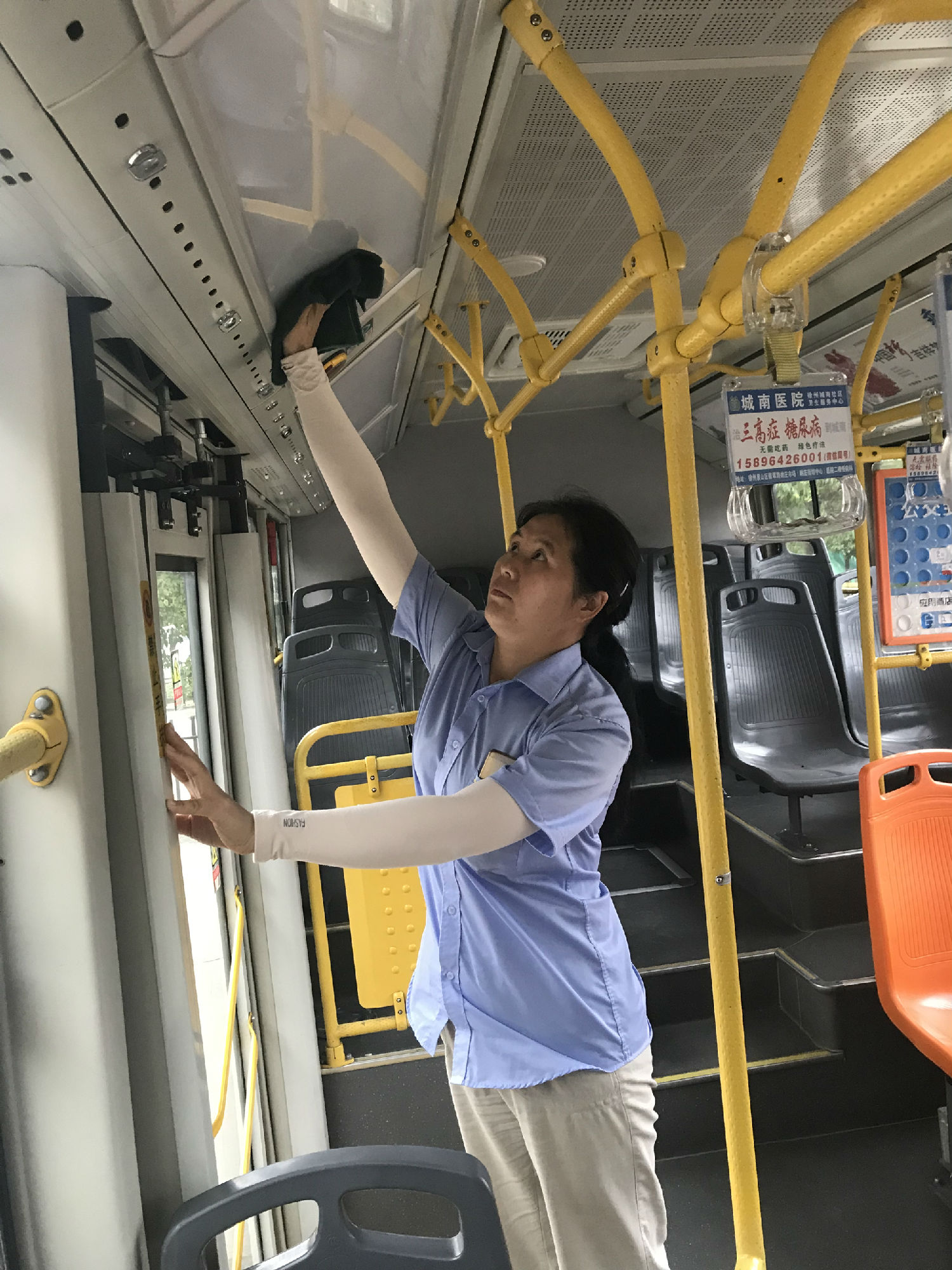 而同時,文明城市復(fù)檢及市民對公交出行期望值的提升,對車輛衛(wèi)生工作提出了更高的標(biāo)準(zhǔn)和要求。作為主要負(fù)責(zé)公交3路車輛衛(wèi)生的現(xiàn)場服務(wù)權(quán)洪,心中只有一個念頭,就是想方設(shè)法把車輛衛(wèi)生弄干凈!