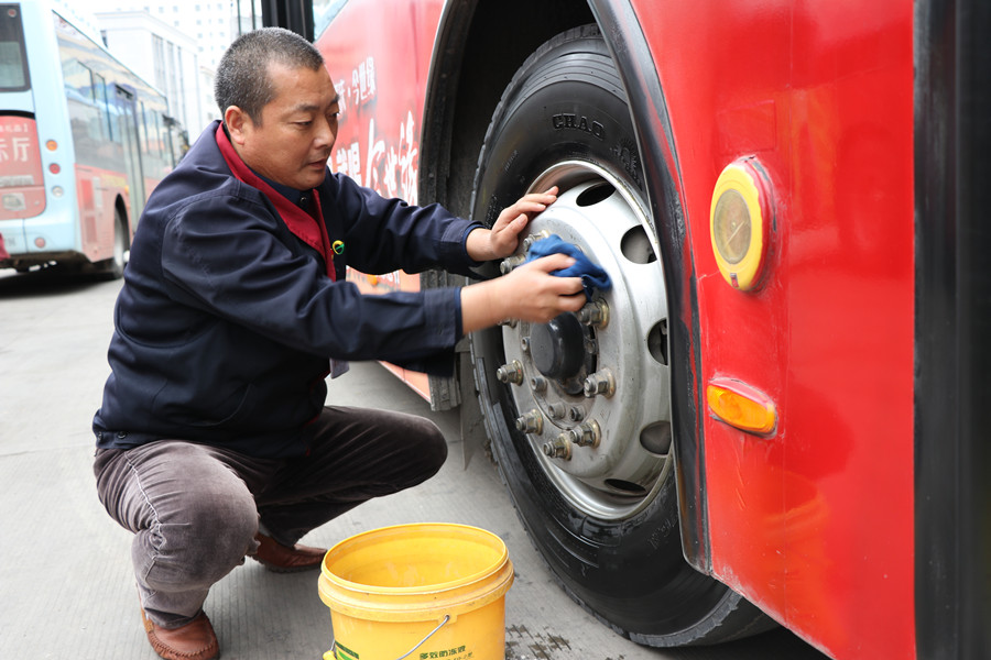 85路線經(jīng)過礦區(qū)路況差,一趟車下來車就很臟了,黨員祁保華把勞動當(dāng)成一種樂趣,只要車輛停下來,他就會拿起刷子,把車身從前到后刷上一遍,再用抹布細(xì)細(xì)擦,輪胎更是一趟一擦,一天8個來回,他就要擦8遍輪胎。晚上在文化宮跑夜班,都晚上9點了,他還借著微弱的路燈,里里外外把車打掃干凈。在他的帶動下,85路線駕駛員由觀望到比賽,都成了車輛保潔的好手。