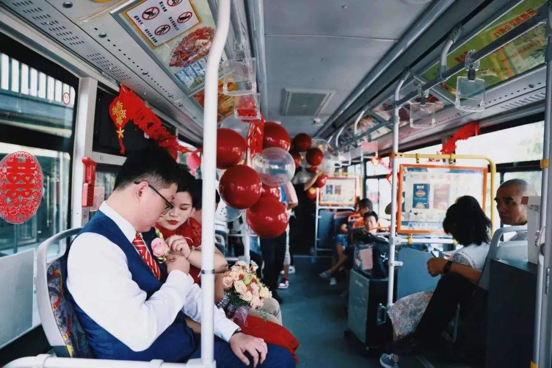“愛情需要紀(jì)念日,生活需要儀式感,今天的感受很特別?!毙履镎f,“親朋好友都聚集在寬敞的公交車?yán)?,一路歡歌笑語,特別有儀式感、氛圍感?!?/span>