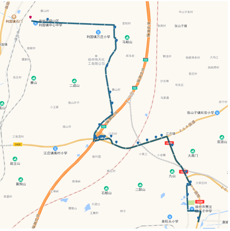 停靠站點(diǎn):賈汪客運(yùn)站,宏安路口,賈汪老站,大李莊,江莊南,江莊北,鐃鈸,龍山水泥廠,萬莊,馬元,郝家,蔡山,利國。