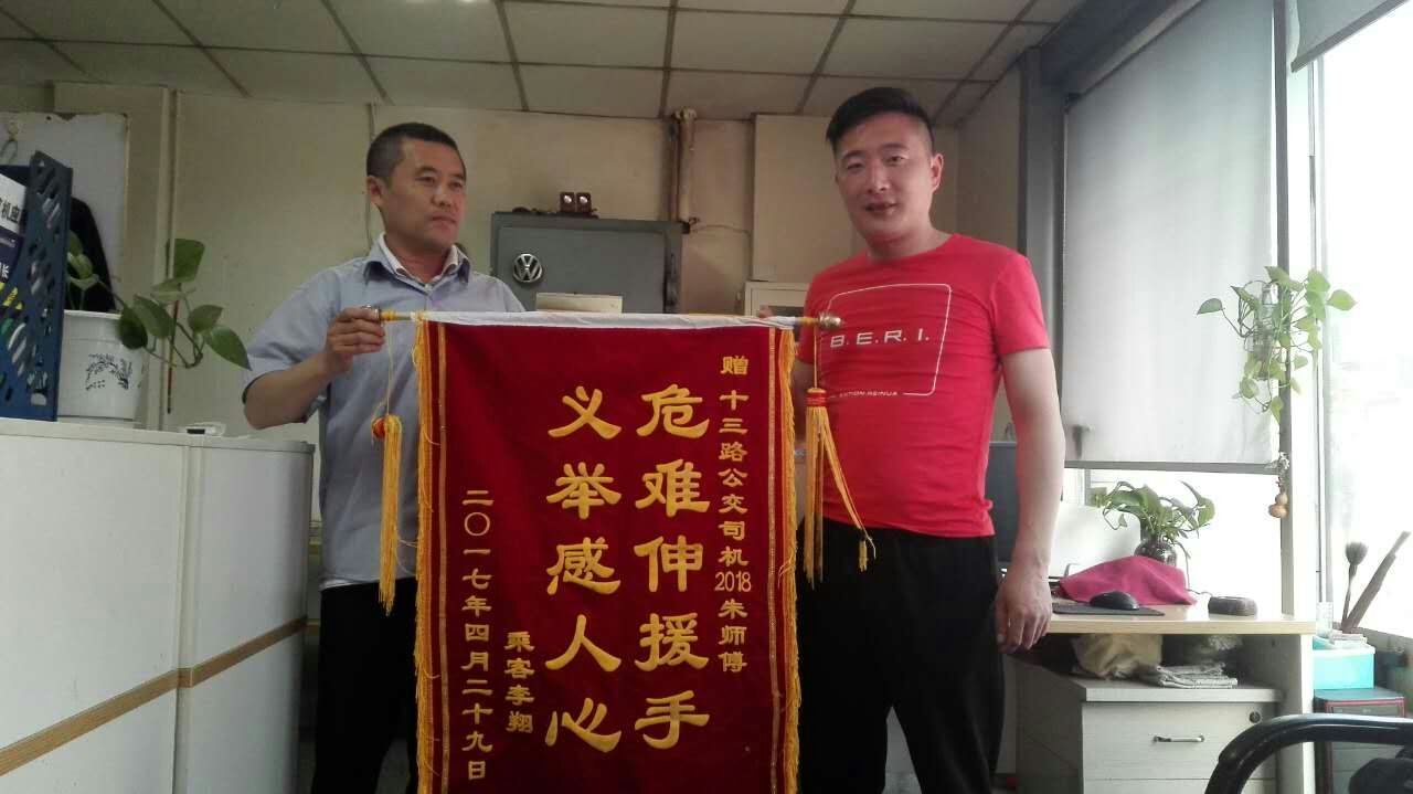 4月29日下午,13路調(diào)度室收到一面錦旗,表揚13路駕駛員朱輝見義勇為的行為。原來,4月26日下午13點左右,李先生孩子誤食過敏食物,導(dǎo)致全身過敏,李先生以為孩子只是一般過敏,應(yīng)該沒什么大礙,便從唐溝乘坐13路車前往市二院,沒有乘坐出租車。當(dāng)車輛行駛一段時間后,李先生發(fā)現(xiàn)孩子臉色越來越差,這時,急壞了的李先生立即求助駕駛員,駕駛員朱輝了解情況后,看到孩子病情嚴(yán)重,不能耽誤,在征求車上乘客的意見后,直接將公交車開到市二院,公交車化身救護(hù)車,為孩子贏得了寶貴的救助時間。孩子家長十分感激,在孩子好轉(zhuǎn)后,親自前來感謝。