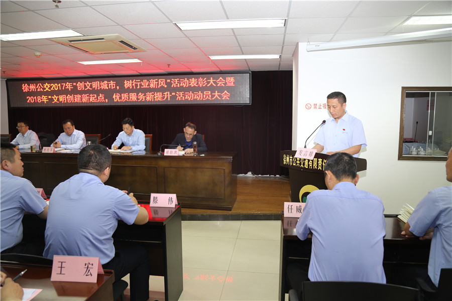 最后,公司董事長、總經(jīng)理杜紅軍作重要講話,對2017年文明城市創(chuàng)建工作進(jìn)行了總結(jié),對公交廣大干部員工在創(chuàng)建中的辛勤付出和取得的成績給予了充分肯定。同時(shí),分析了目前的創(chuàng)建形勢,提出了新時(shí)期工作要求。他強(qiáng)調(diào):各單位要不斷總結(jié)創(chuàng)建經(jīng)驗(yàn),用制度鞏固好已有的創(chuàng)建成果;要營造良好氛圍,用核心價(jià)值觀帶動(dòng)行業(yè)文明新風(fēng);要深化創(chuàng)建內(nèi)涵,用優(yōu)質(zhì)服務(wù)打造公交文明新亮點(diǎn)。要以全國文明城市創(chuàng)建成功為契機(jī),以常態(tài)長效為目標(biāo),努力打造溫馨公交、安全公交、便捷公交、智慧公交,以高質(zhì)量服務(wù),實(shí)現(xiàn)群眾滿意;以高標(biāo)準(zhǔn)要求,優(yōu)化公交形象,在流動(dòng)的車廂傳播精神文明,譜寫出新時(shí)期公交行業(yè)文明創(chuàng)建的動(dòng)人樂章,為加快建設(shè)“強(qiáng)富美高”新徐州交出公交人的滿意答卷!