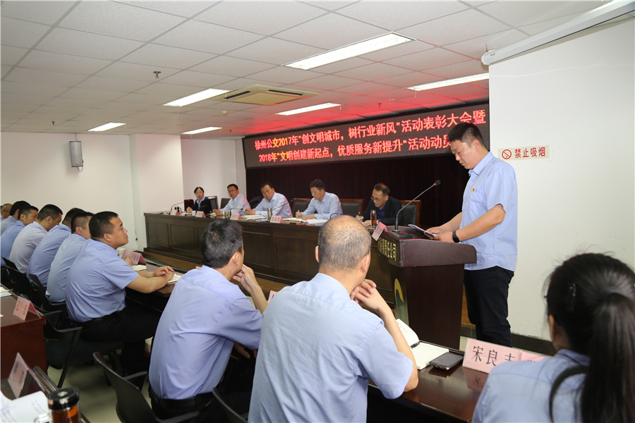 5月10日上午,有限公司召開“2017‘創(chuàng)文明城市、樹行業(yè)新風(fēng)’總結(jié)表彰暨2018‘文明創(chuàng)建新起點(diǎn),優(yōu)質(zhì)服務(wù)新提升’活動(dòng)動(dòng)員大會(huì)”,主要任務(wù)是對全公司文明城市創(chuàng)建常態(tài)長效工作進(jìn)行部署,動(dòng)員全體干部員工認(rèn)清形勢、再鼓干勁,開啟文明創(chuàng)建新征程,再創(chuàng)優(yōu)質(zhì)服務(wù)新提升。公司董事長、總經(jīng)理杜紅軍,工會(huì)主席竇同銀,調(diào)研員張同剛、祖伯鴻,相關(guān)部室負(fù)責(zé)人,營運(yùn)公司經(jīng)理、書記、服務(wù)主管,車隊(duì)長、先進(jìn)個(gè)人代表等87人參加了會(huì)議。