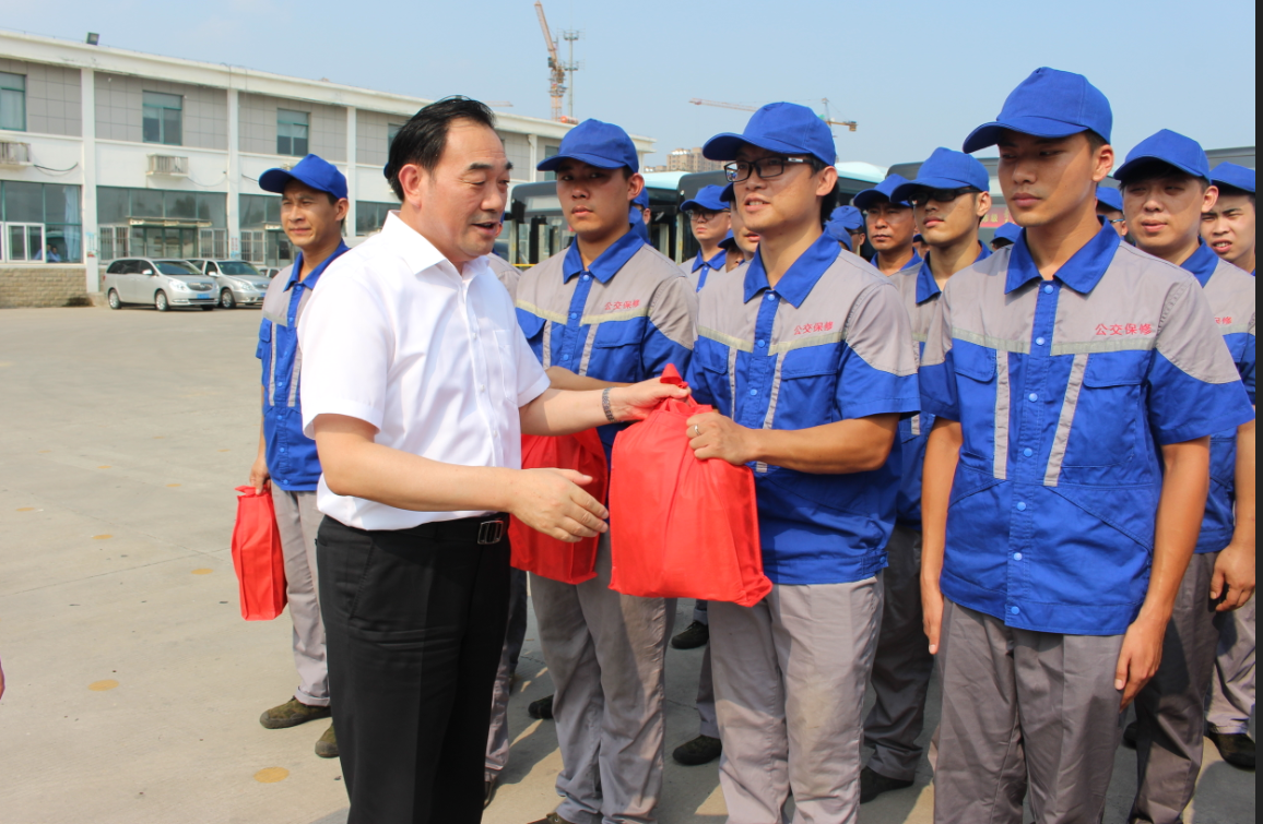 今夏持續(xù)高溫,酷熱難當,8月9日下午,徐州市委書記、市人大常委會主任周鐵根,市委常委、秘書長吳新福,市委常委、組織部長季培東,市人大常委副主任、市總工會主席束志明等一行,頂著炎炎烈日,冒著36攝氏度的高溫,來到公交公司郭莊車場看望慰問在高溫下依然堅守崗位的公交員工,給大家送來清涼、帶來關心,并代表市委、市人大、市政府,向在酷暑天中依然奮戰(zhàn)一線、堅守崗位,戰(zhàn)高溫斗酷暑的公交員工表示衷心感謝,感謝大家的辛勤勞動和無私奉獻、吃苦耐勞的精神。云龍區(qū)區(qū)委、市交通運輸局黨委書記、局長蔡前鋒,公交公司董事長、總經(jīng)理杜紅軍參加了慰問活動。