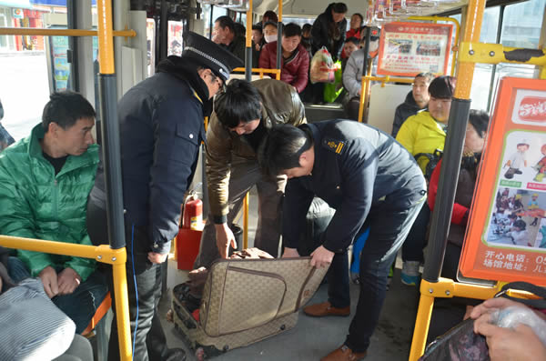 12月2日,在第三個全國交通安全日來臨之際,公交服務(wù)督導(dǎo)隊聯(lián)合公安公交管理大隊開展了危險品大檢查。檢查組分為5個小隊,分別在火車站廣場、副廣場,東甸子公交站臺,對公交車乘客攜帶物品進行仔細(xì)檢查,確保公交乘客安全。
