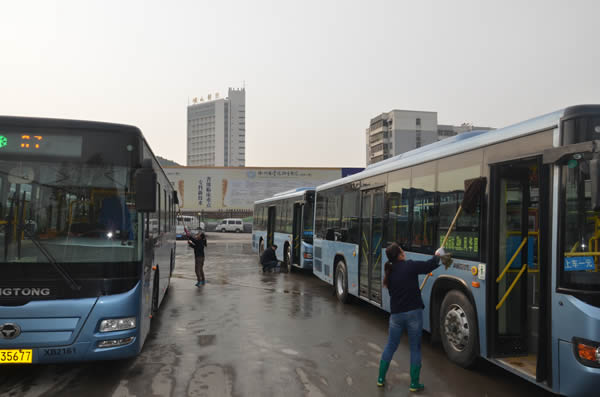特別是雨后,所有管理人員、調(diào)度員、駕乘人員齊上陣,利用休停和晚收車(chē)后的時(shí)間,加班加點(diǎn)對(duì)2300多臺(tái)營(yíng)運(yùn)車(chē)輛和各公交首末站、停車(chē)場(chǎng)、調(diào)度室等環(huán)境衛(wèi)生進(jìn)行了徹底的衛(wèi)生大掃除,清理衛(wèi)生死角。由機(jī)關(guān)職能部室和服務(wù)督導(dǎo)隊(duì),以及各營(yíng)運(yùn)公司組成檢查組,每天都要在線路開(kāi)展衛(wèi)生專(zhuān)項(xiàng)檢查。針對(duì)檢查中發(fā)現(xiàn)的問(wèn)題限期整改,責(zé)任到人。徐州公交在每臺(tái)車(chē)的前擋風(fēng)玻璃處放置了創(chuàng)衛(wèi)標(biāo)語(yǔ),在公交首末站懸掛創(chuàng)衛(wèi)標(biāo)語(yǔ)37個(gè),在700多臺(tái)公交車(chē)載電視中滾動(dòng)播出創(chuàng)衛(wèi)宣傳片,制作了創(chuàng)衛(wèi)健康宣傳專(zhuān)版30多個(gè),在每個(gè)調(diào)度室張貼了《中國(guó)公民健康素養(yǎng)66條》,在所有停車(chē)場(chǎng)、辦公區(qū)域、車(chē)廂內(nèi)張貼了禁煙標(biāo)識(shí)。